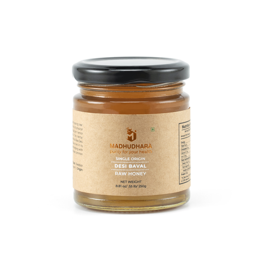 Baval Tree aka Babool tree is called a ‘healing tree’. It has very high healing power for physical, muscular pains. Raw Desi Baval Honey has a taste and smell like that of a Desi Baval tree. It is made by bees from the nectar collected from the flowers of Desi Baval. It is a rich source of Calcium and is able to solve a lot of health problems related to muscles and joints in our body. It can also help with issues like Arthritis.